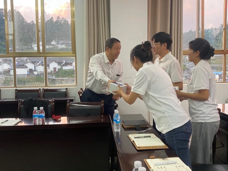 座谈交流结束后,夏雪山校长一行向研支团志愿者们发放慰问品。