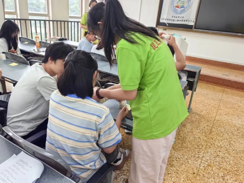 研支团成员根据红十字会培训知识和自身专业技能,在“急救护航,关爱健康”的志愿服务中,助力学弟学妹提升应急救援能力。