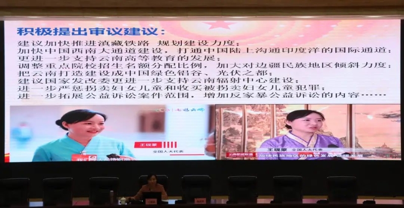 王砚蒙介绍了第十三届全国人大五次会议的基本情况和总书记的重要讲话,进行了政府工作报告的解读以及自己履职情况的汇报。此外,王砚蒙还在第十三届全国人大五次会议上提出要加强大学生创业、就业的政策支持等多项审议建议,传达了大学生的心声。