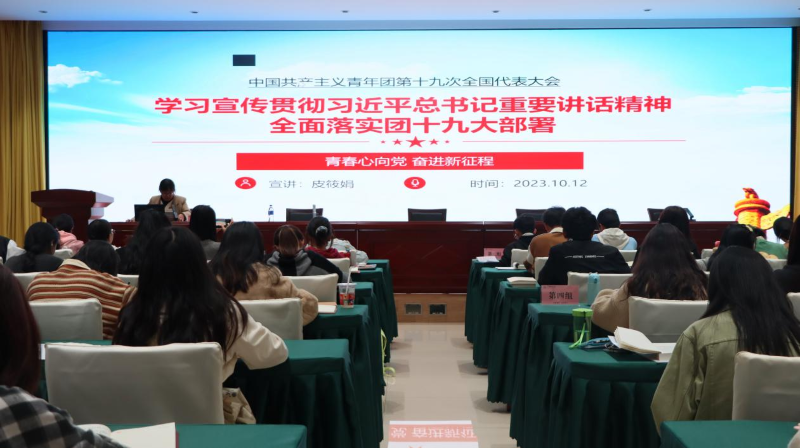2023年11月9日,米兰milan官方网站校团委副书记皮筱娟主讲了题为“学习宣传贯彻习近平总书记重要讲话精神,全面落实团十九大工作部署”的专题讲座。介绍了团十九大会议基本情况,传达学习了团十九大报告,领学了习近平总书记在同团中央新一届领导班子集体谈话时的重要讲话精神,对青马学员认真贯彻落实团十九大各项工作部署作出了要求。