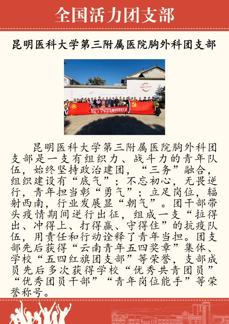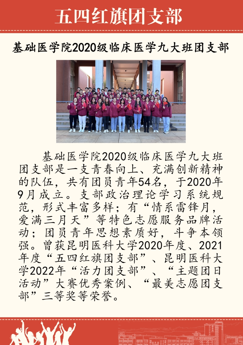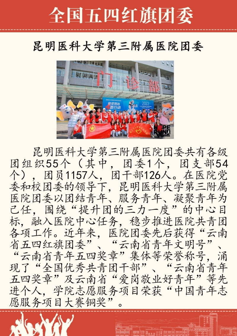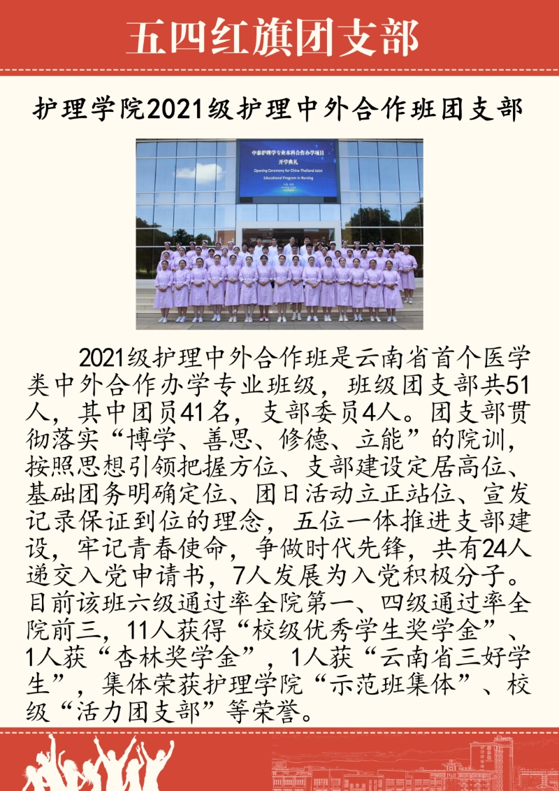 2022年度,我校各级团组织和广大团员、团干部牢记初心使命,在推进医疗卫生事业、学校改革建设发展、共青团工作中发挥了生力军和突击队作用,涌现出了一大批先进典型,用实际行动践行了“请党放心、强国有我”的青春誓言。我校1个团委获“全国五四红旗团委”,1个团支部入围“全国高校活力团支部最具组织力TOP100”,2名青年获“中国大学生自强之星”,2个青年集体获“云南省青年文明号”。学校对4家“五四红旗团委”、56个“五四红旗团支部”、21个“青年文明号”、616名“优秀共青团员”、187名“优秀共青团干部”、110名“青年岗位能手”、256名团学工作和活动“先进个人”及10名“标兵”予以表彰。