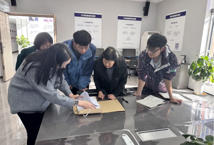 会上,王媛代表档案馆向来访同仁表示欢迎与问候,并围绕管理考核机制、人员构成、基础业务及新馆建设等方面进行了详细介绍,工作人员同步演示了相关系统操作。随后,双方就制度建设、部门立卷、馆舍布局等内容进行了深入讨论。