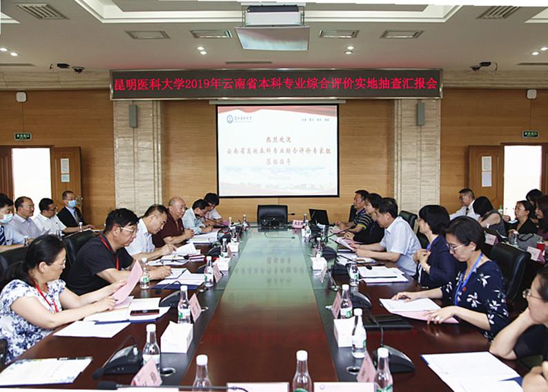 6月16日,云南省2019年高校本科专业综合评价专家组进校,对我校麻醉学、临床药学、公共事业管理、运动康复、法学5个专业开展实地抽查工作。专家组由云南省教育厅原副厅长邹平教授率队,理学学科组组长、云南大学肖蘅教授任组长,云南师范大学副校长刘坚教授和体育学院副院长聂真新教授、云南大学研究生院院长王启梁教授、大理大学药学与化学学院院长彭芳教授、米兰milan官方网站何勤教授和何梅副教授为成员。校长李松、副校长李燕、教务处、教学质量与监控中心、各专业主任和相关工作人员参加抽查工作。实地抽查工作分三个阶段进行。