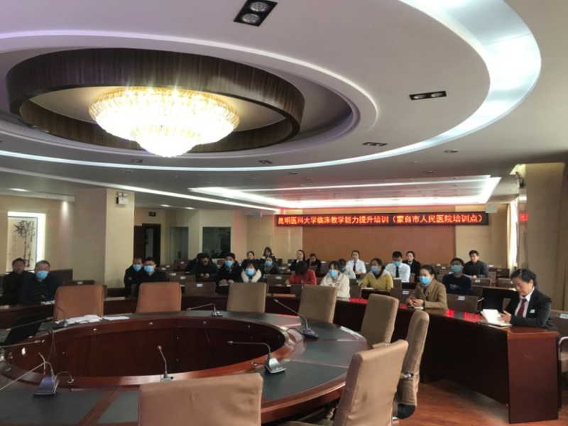 1224日上午,教师培训中心在呈贡校区东苑沉浸式教室举办了临床教学能力培训暨第一期校内教学开放日活动。本次培训旨在促进临床教师提升教学能力,活动安排了2个主题,附一院儿科教研室主任黄永坤教授就如何进行教学查房进行了专题讲授,附二院中青年骨干教师候友芳就如何组织好一堂临床理论课进行了教学示范。培训活动线上线下同步进行,学校16所附属医院、15所教学医院和42所实习医院的教师参加了活动。