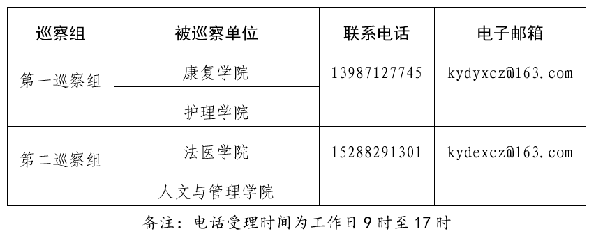 据悉,按照学校党委和党委巡察工作领导小组的统一安排,本轮2个巡察组已进驻4个被巡察单位,现场巡察时间为40天左右。巡察期间同步开展对法医学院、人文与管理学院处级领导干部任期经济责任审计。