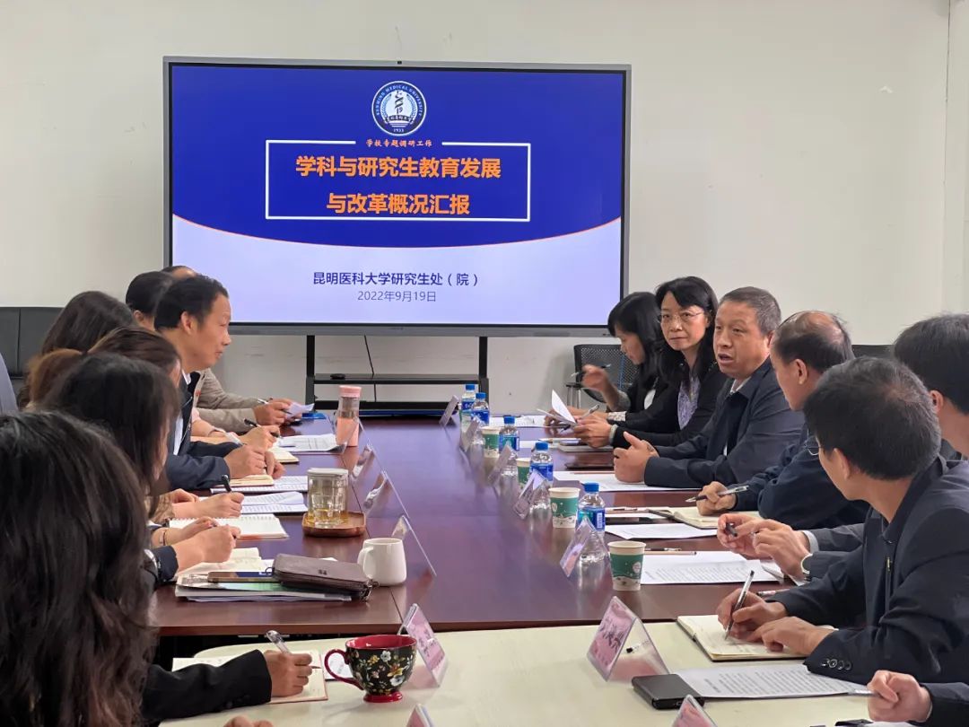 9月19日上午,校长夏雪山到研究生处开展工作调研。副校长解保生,校长办公室主任李国琼、副主任周铨,研究生处党政班子全体成员及科室负责人参加调研座谈会。 研究生处处长张颖介绍了研究生处基本情况,对学校学科建设及学位与研究生教育等工作的开展情况、存在困难及下一步工作举措等进行了汇报。研究生处党委书记王金德对研究生思想政治及日常教育管理等工作进行了简要介绍。 夏雪山结合当前医学教育现状,从学校研究生招生、培养、学位点建设和评估、导师队伍建设、学术诚信、日常教育、提高管理效能等方面谈了自己的思考和体会;并就坚持学科建设龙头地位不动摇,加强学科整体布局,系统推进学位与研究生教育高质量发展提出了明确要求和指导性意见。
