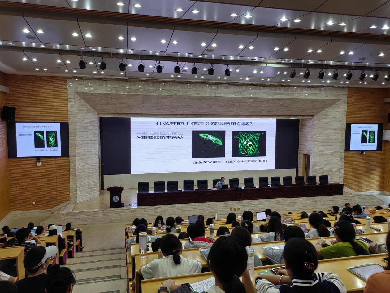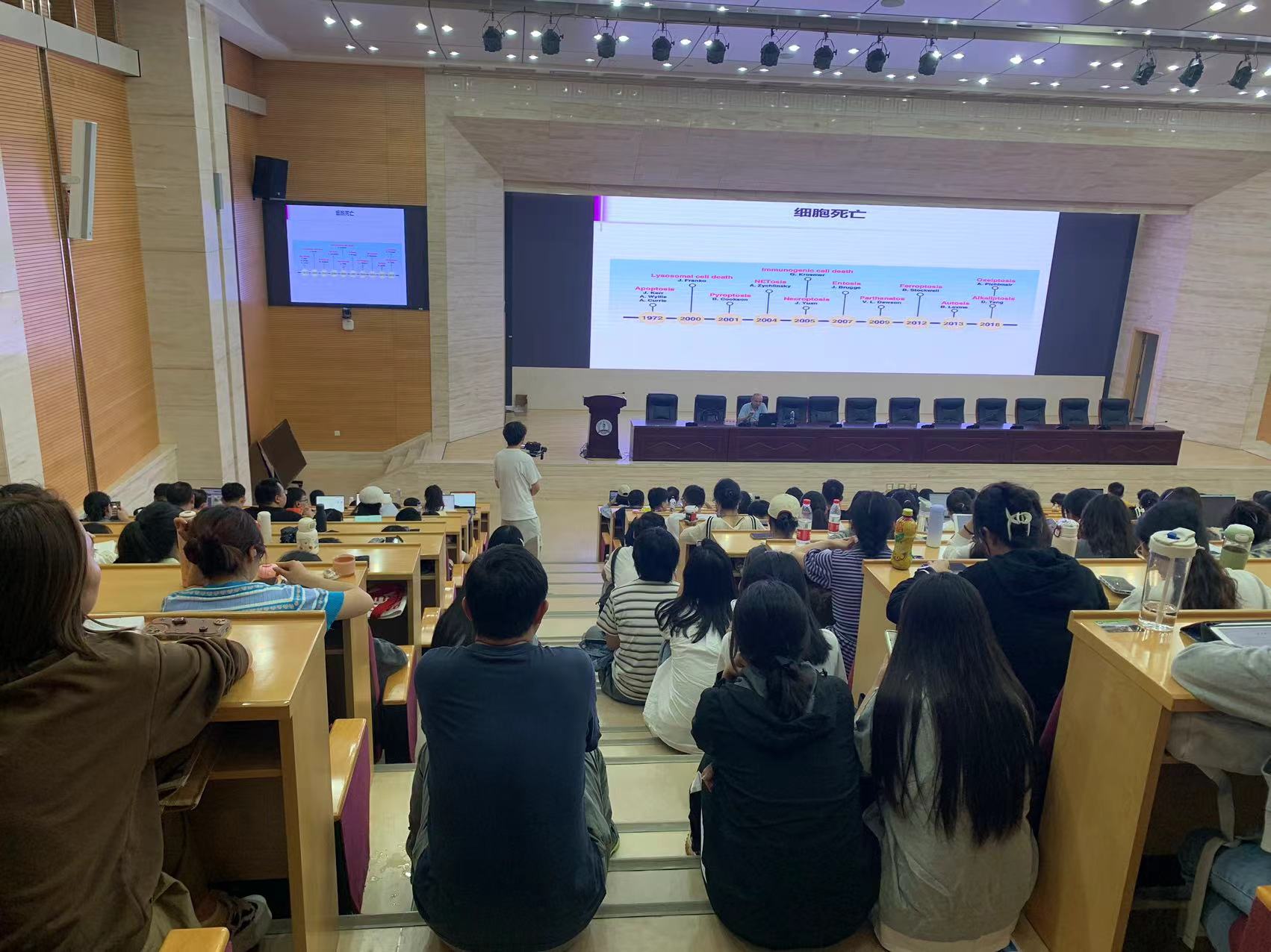9月13、14日,邀请到四川大学华西第二医院研究院副院长,国家杰出青年科学基金获得者、国家海外高层次青年人才、生物治疗国家重点实验室贾大教授为我校师生作了题为《跟诺贝尔奖得主学习科研选题》和《有膜与无膜细胞器》的专题讲座。贾大教授从诺贝尔奖得主讲起,介绍了他们在科研选题上的决策模式和成功经验,重点对如何更好地把握研究方向,减少盲目性探索,更高效地取得突破性的科研成果进行了阐述。他还介绍了有膜细胞器和无膜细胞器相关前沿研究,分析了线粒体自噬以及其在疾病中的作用,讲解了相分离现象及其生物学意义。