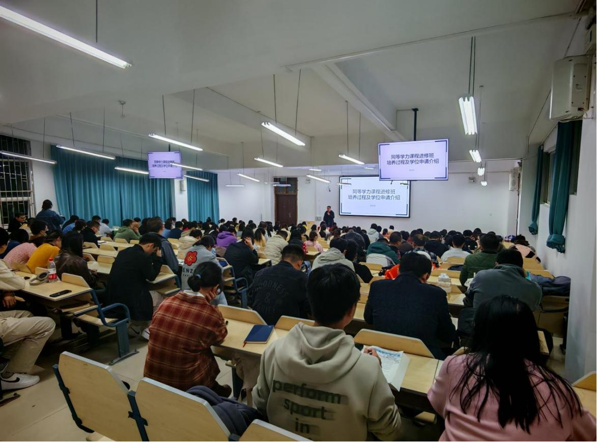 10月23日下午19:00,米兰milan官方网站2024级同等学力课程进修班高新区办学点班会暨开班仪式在教学楼102教室举行,研究生处党委负责人、行政分管领导、培养与质量评估科工作人员参加了此次活动。