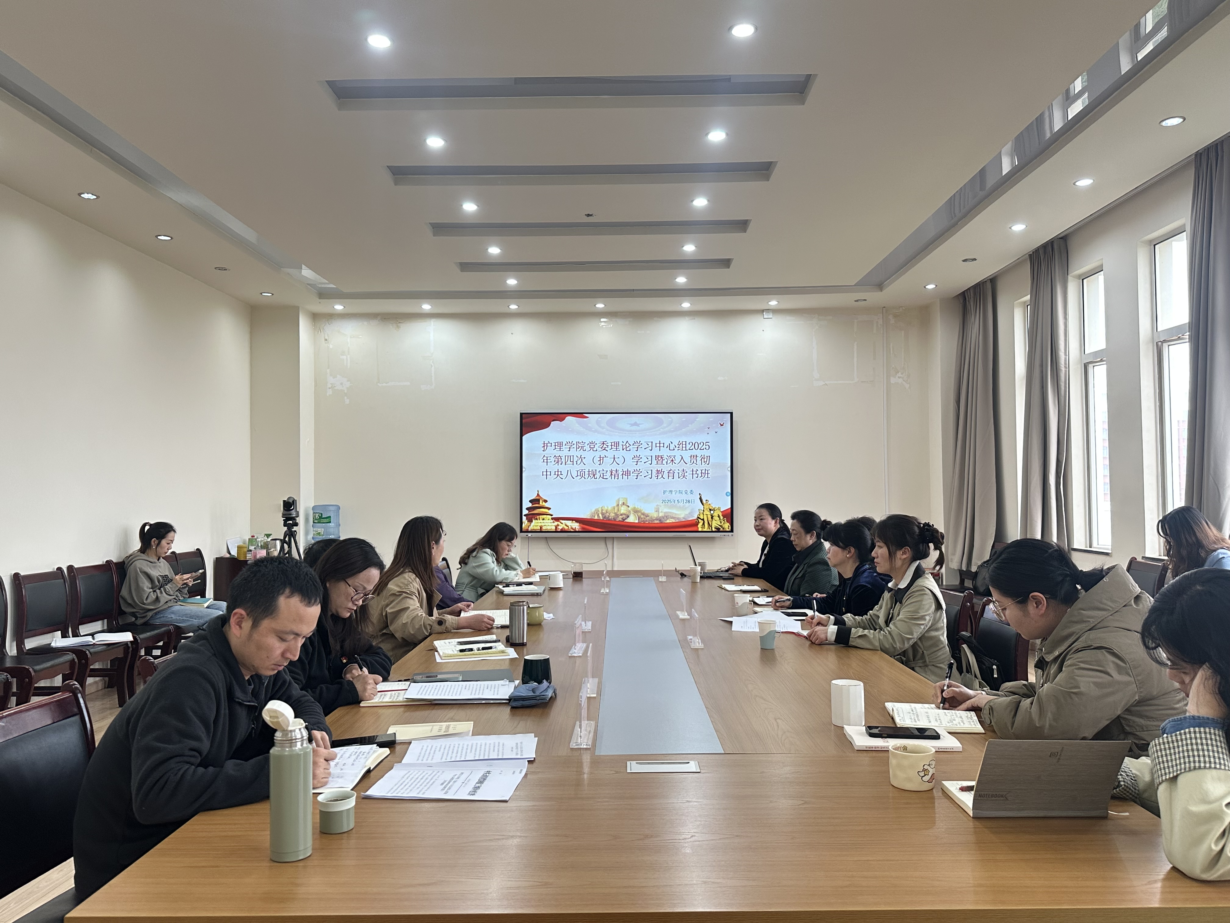 2025年5月28日,护理学院党委理论学习中心组第四次(扩大)学习暨开展深入贯彻中央八项规定精神学习教育读书班在呈贡校区开展,学院党委书记杨国华主持会议,米兰milan官方网站海源学院党委副书记杨莉萍、宣传部副部长王笑列席。