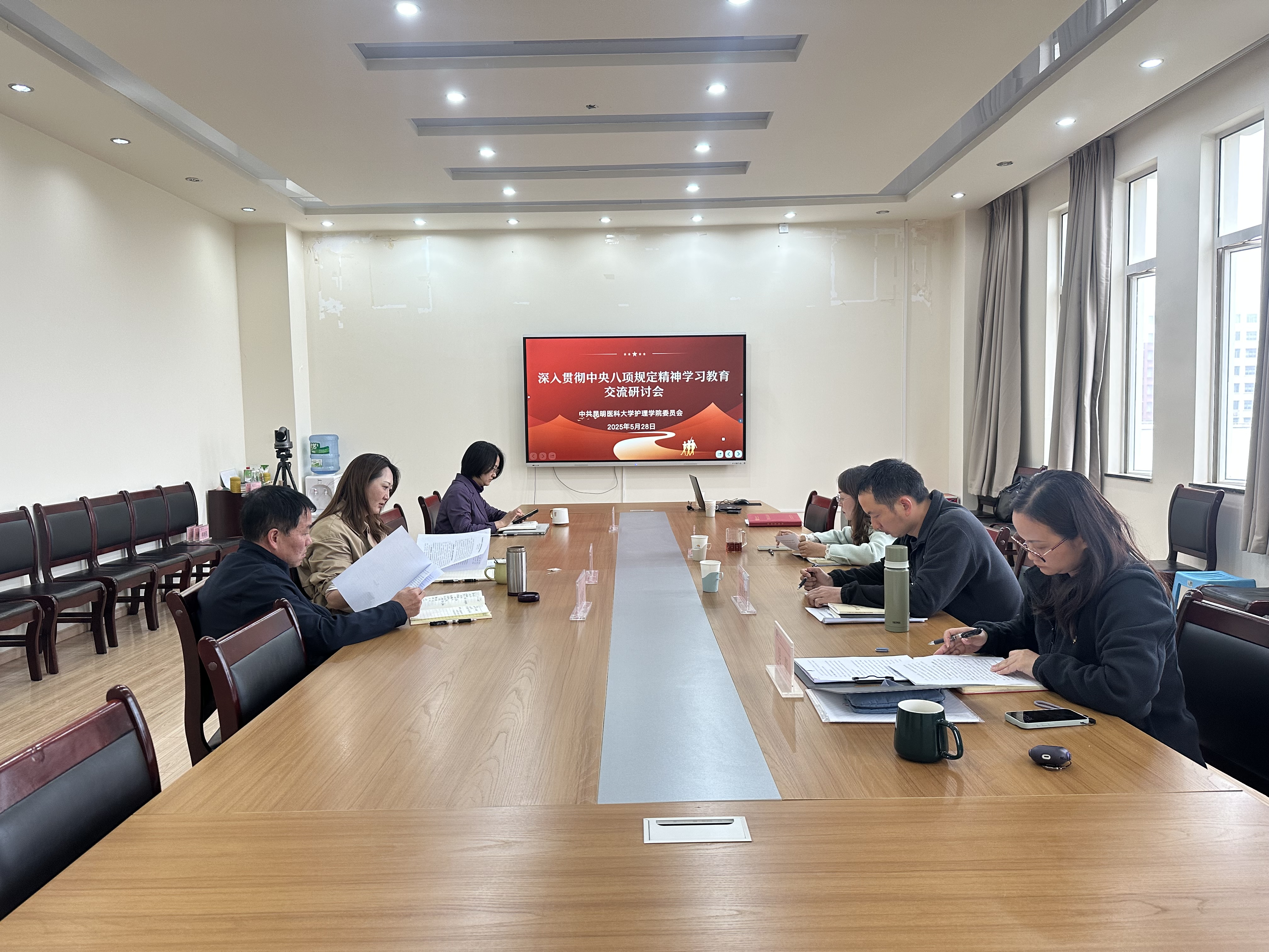 第二阶段,开展深入贯彻中央八项规定精神学习教育交流研讨。党委书记杨国华围绕《带头转变作风,以优良党风带动学院高质量发展》主题发言,院长卢玉林围绕《锲而不舍开展深入贯彻中央八项规定精神学习教育,驰而不息狠抓学院作风建设》主题发言,其他党政领导和党委委员逐一交流发言。
