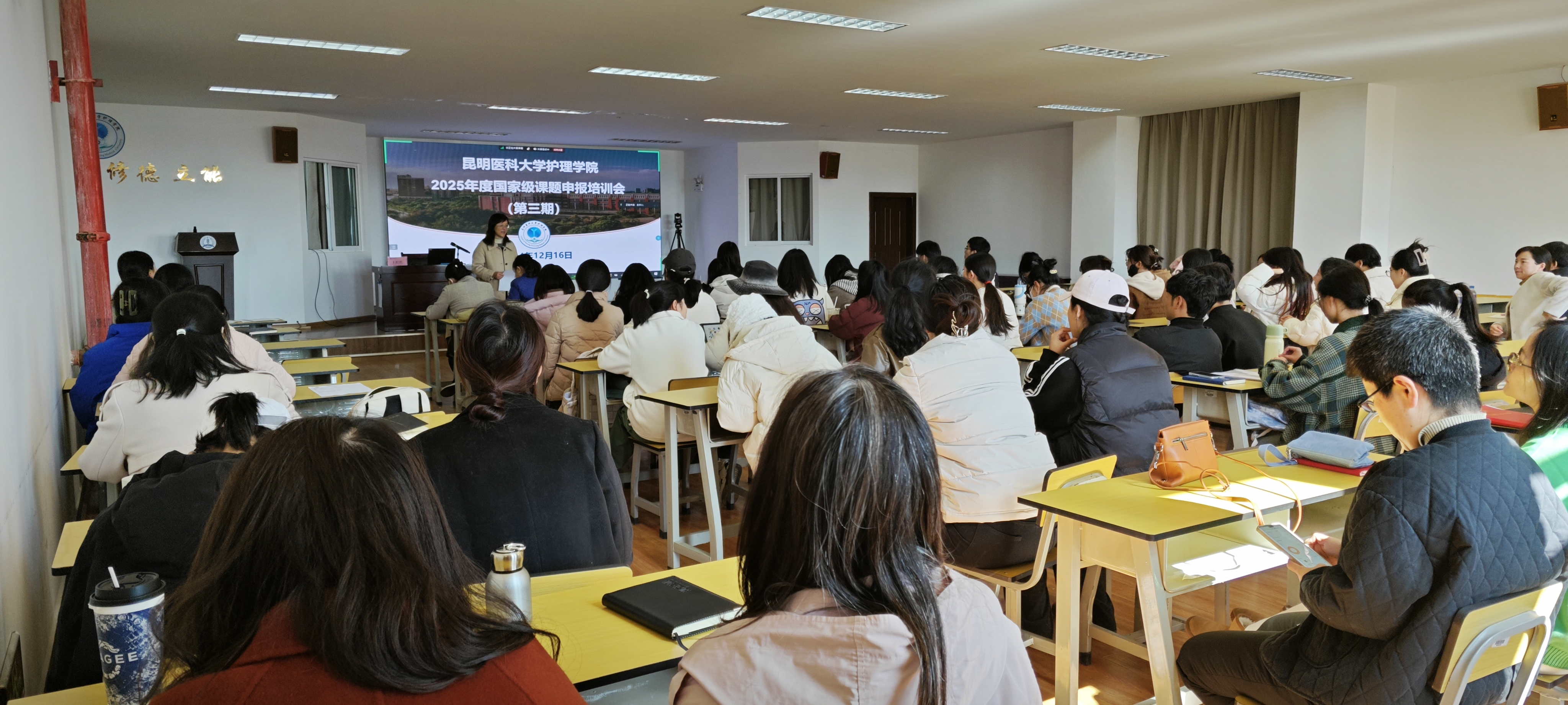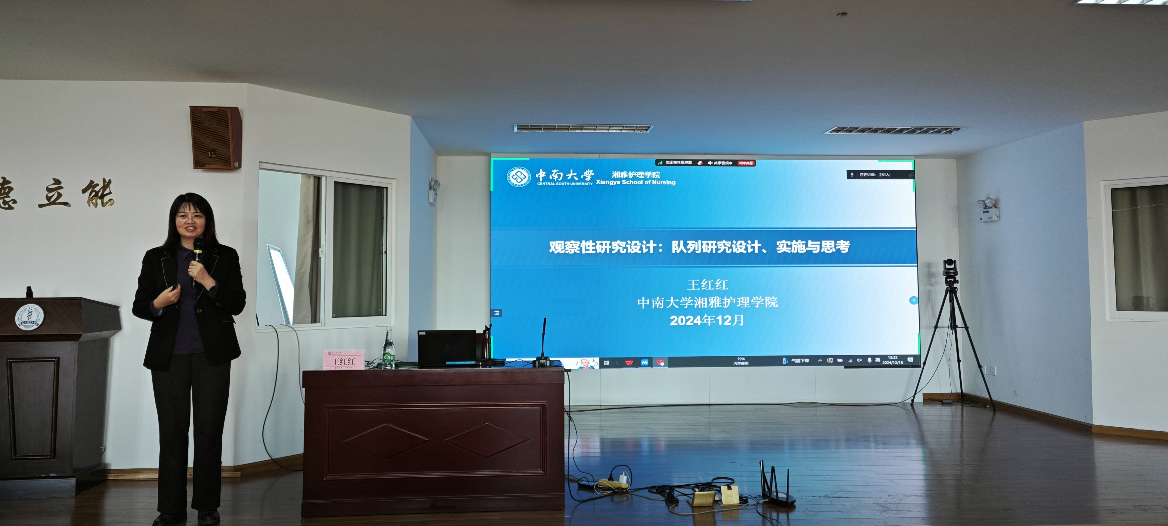 12月16日下午,米兰milan官方网站护理学院在明德楼501教室举办2025年国家级课题申报培训(第三期),本次培训特邀中南大学湘雅护理学院院长王红红担任主讲嘉宾,米兰milan官方网站护理学院院长卢玉林主持,护理学院全体教师、研究生及导师等150余人线上线下参加培训。