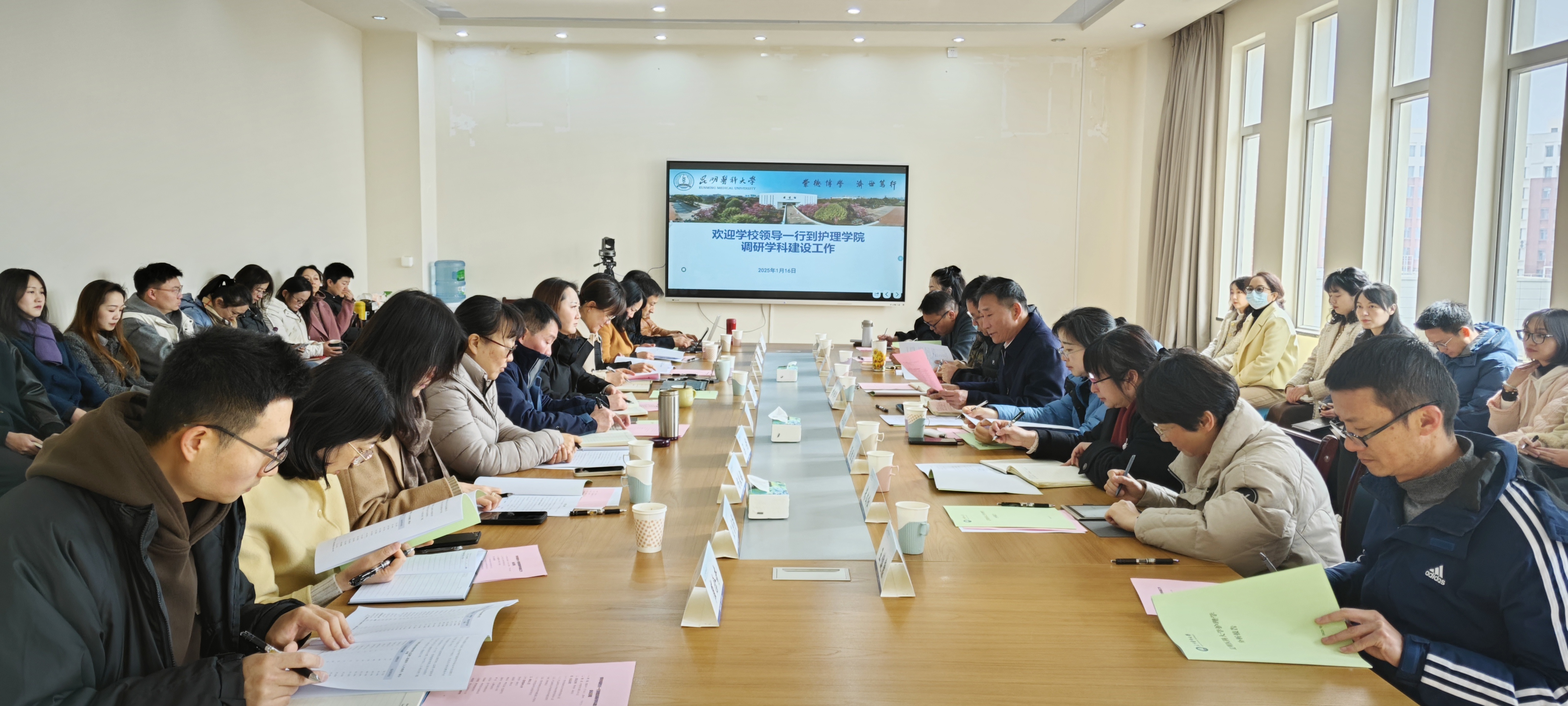 1月16日,学校党委常委、副校长李利华、奚春睿率研究生处、人事处、资产管理处、科学技术处、财务处等职能部门负责人到护理学院调研指导学科建设工作。学院党政领导,直属附属医院学科团队负责人、分方向负责人、骨干教师代表及全院教职工参加调研。调研会由李利华主持。