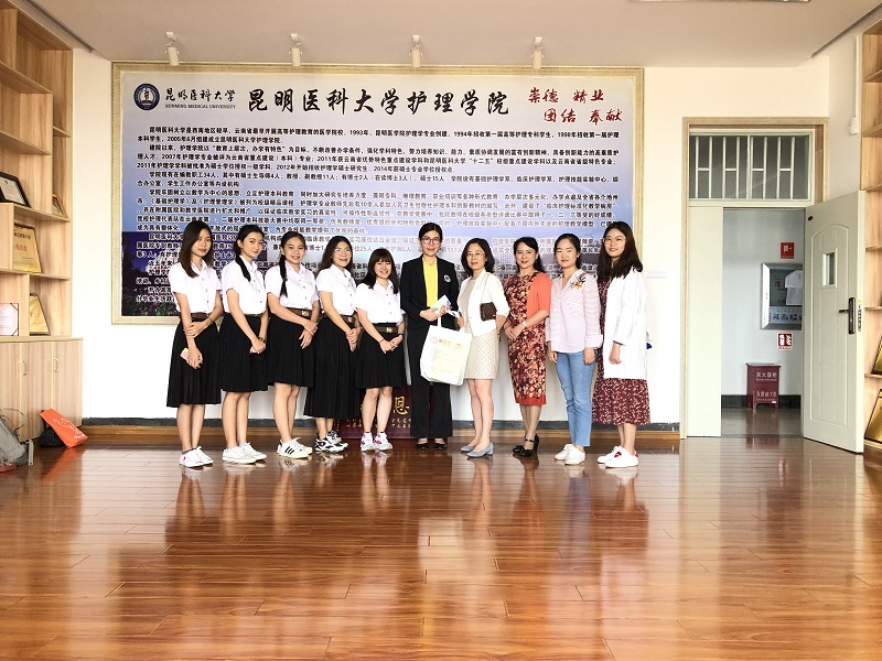 2019年7月15日,受米兰milan官方网站护理学院邀请,清迈大学护理学院讲师ThongdeePaveena及护理学本科生一行7人来访我院。欢迎仪式上,护理学院张颖副院长、清迈大学教师ThongdeePaveena分别对双方学院的护理科研与教学、管理体系、人员结构等作了详细介绍。介绍完毕,双方互赠纪念品,合影留念。护理学院专职组织员刘红老师为来访师生介绍了云南省及昆明市的风景名胜及文化历史。护理学院教师代表余华博士为来访师生做了精神健康护理的讲座,研究生王安琪和罗琦在讲座中介绍了自己的课题,双方就此展开了讨论。学术交流结束后,在张颖院长的带领下,师生一行首先参观了护理技能中心以及荣誉陈列室。参观结束后,师生一行对我院先进的教学条件和良好的学习氛围给予了高度评价,并对双方多年来对外交流取得的成果给予了肯定并就双方未来的国际交流工作前景致以美好的祝福。当天下午,基础护理系主任陶慧老师就造口护理做了相关讲座,师生就造口专科护士发展及现状进行讨论交流。随后冉凌云老师向师生团介绍了老年照护系统,就中泰两国老年照护系统的异同点进行讨论。