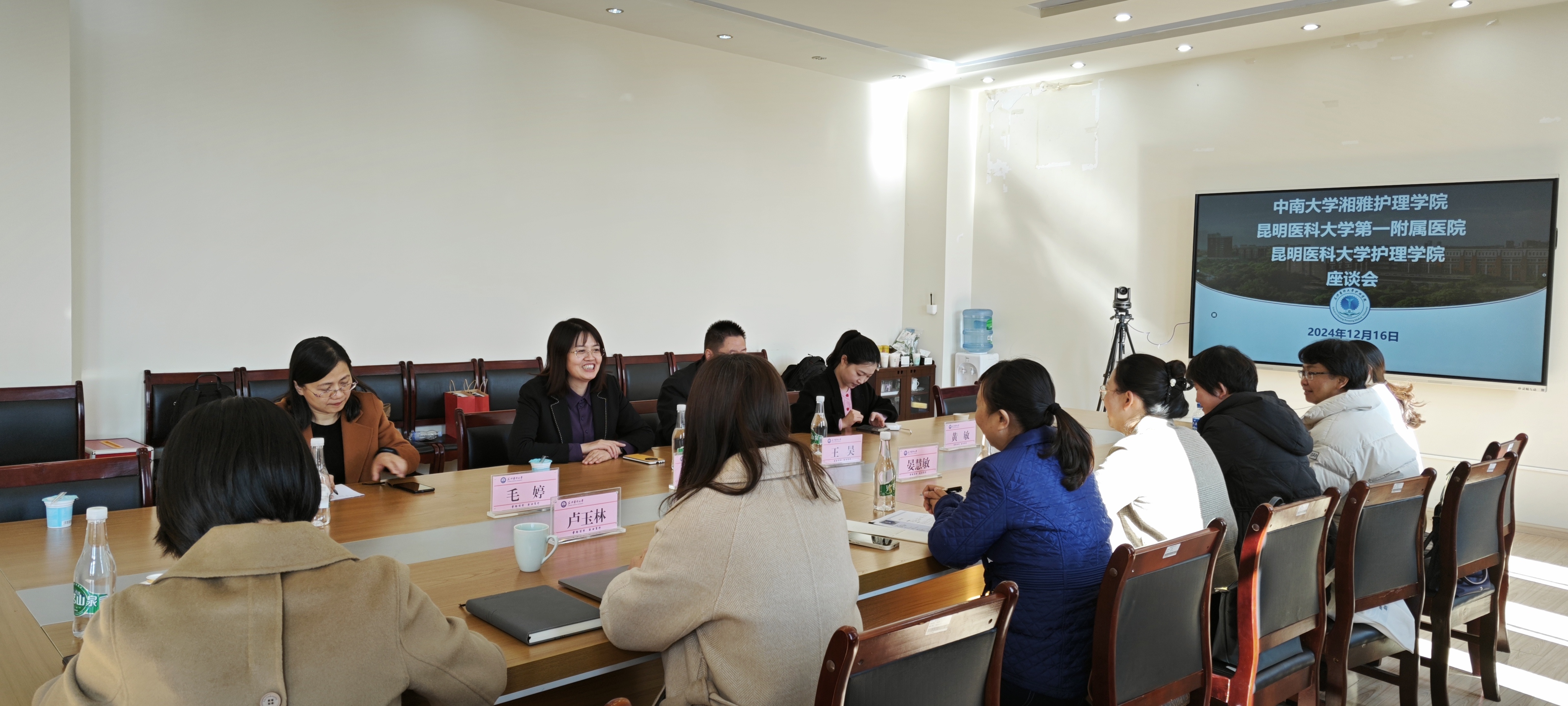 2024年12月16日,中南大学湘雅护理学院院长王红红、党委副书记王昊等一行四人到我院访问,我院党委书记杨国华、院长卢玉林、副院长陶慧、米兰milan官方网站第一附属医院护理部副主任马芳以及湘雅校友参与了此次交流。