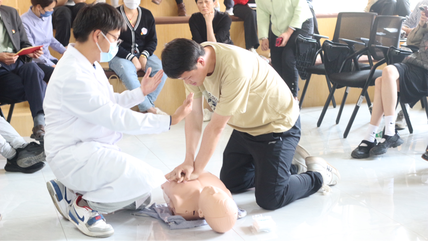 活动致力于提高社区居民急救自救能力、糖尿病和高血压知识普及率,让更多社区居民关注慢性疾病的早期预防、早期发现和早期治疗。活动中,志愿者协会的同学们向社区居民开展了心肺复苏、海姆立克急救法的技能培训,宣讲了糖尿病、高血压等慢性疾病的健康知识,并为现场居民进行了血压和血糖测量。近50名社区居民参加了本次急救和健康科普活动。