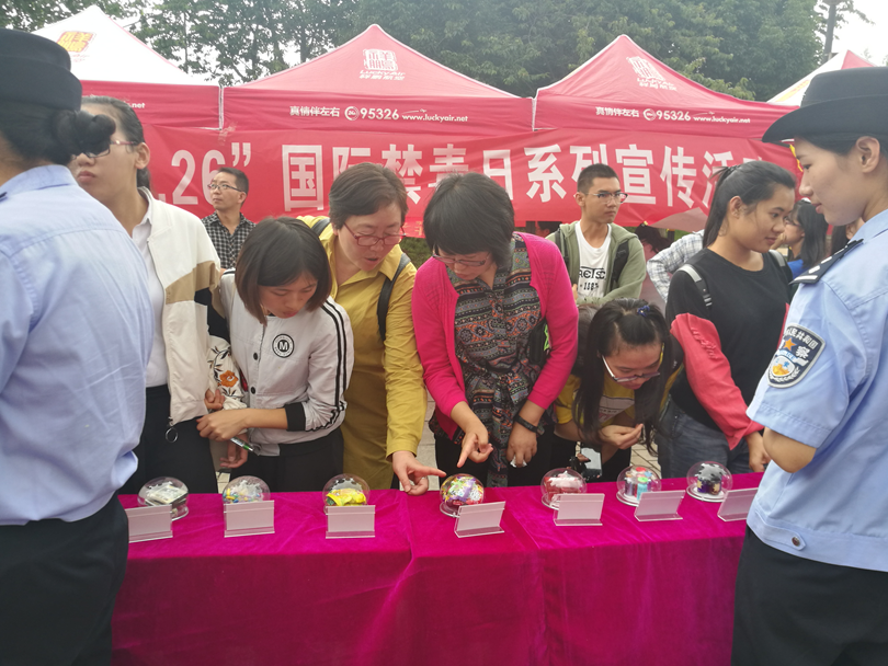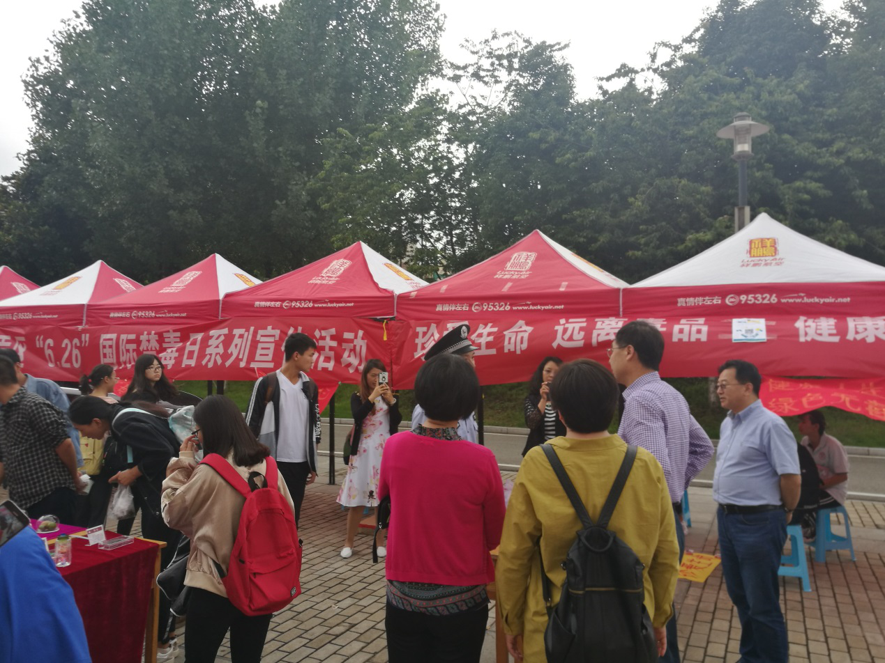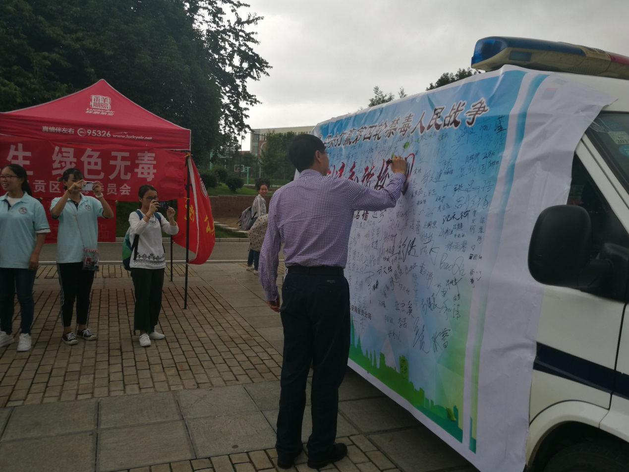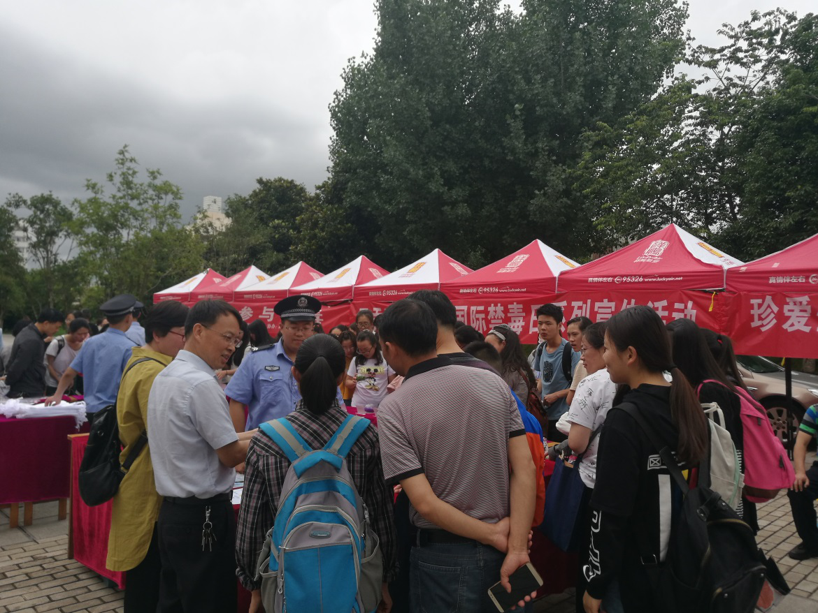 在第三十一个国际禁毒日来临之际,6月25日,米兰milan官方网站联合昆明市公安局呈贡分局禁毒大队,在呈贡校区开展了以“健康人生,绿色无毒”为主题的系列禁毒宣传活动。校党委副书记、校长李松,校党委委员、副校长李铭,校长办公室、学生工作处、公共卫生学院负责人等参加了活动。
