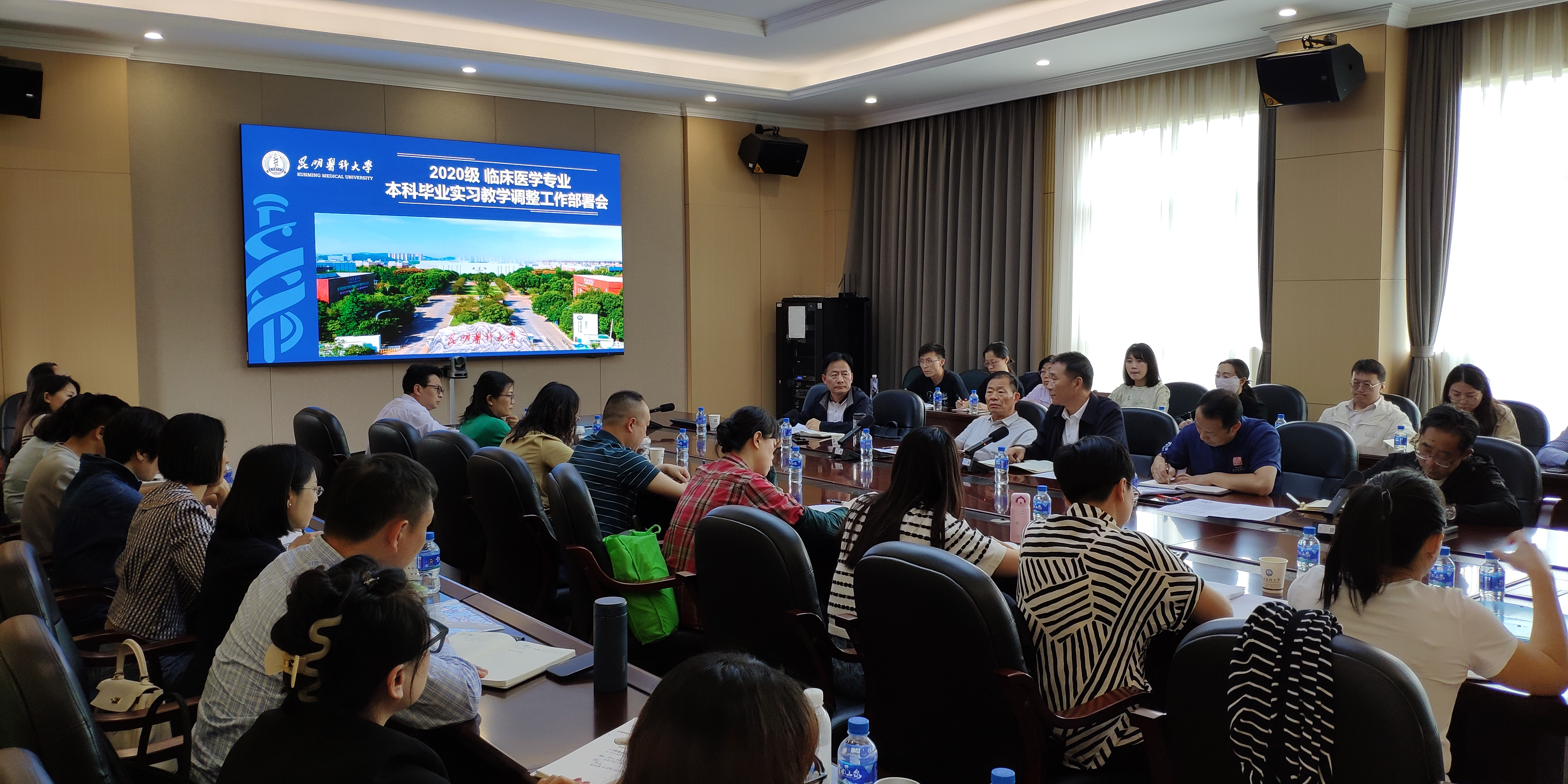 2024年5月21日下午,2020级临床医学专业本科毕业实习教学调整工作部署会在学校呈贡校区召开,对2020级临床医学专业本科毕业实习教学调整工作进行部署和安排。学校党委常委、副校长李利华,学校学生处、教务处、后勤保障中心负责人;第一、第二临床医学院教学管理部门负责人、实践教学专管教师、学生管理部门负责人、2020级临床医学专业辅导员;附属延安医院、附属甘美医院教学管理部门负责人、实习教学专管教师;新承担2020级临床医学专业实习轮转教学任务的第五附属医院、附属昭通医院、附属德宏医院、保山市人民医院、大理州人民医院、楚雄州人民医院、丽江市人民医院,教学管理部门负责人及实践教学、学生管理专管教师参加会议,会议由教务处处长主持。