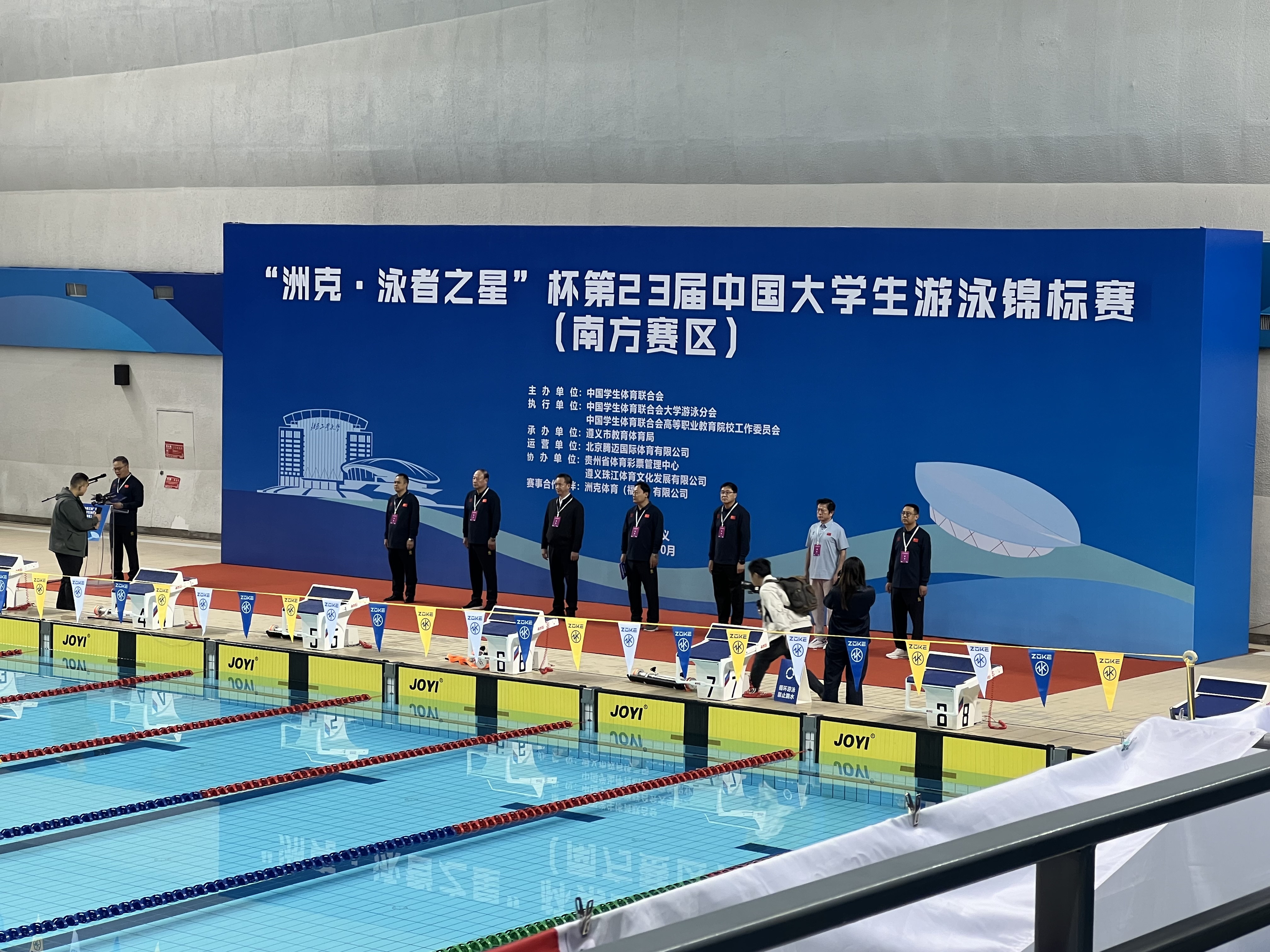 2024年10月11日,我校游泳队在佟钧老师和李榆老师带领下参加了"洲克.泳者之星"杯第二十三届中国大学生游泳锦标赛(南方赛区).