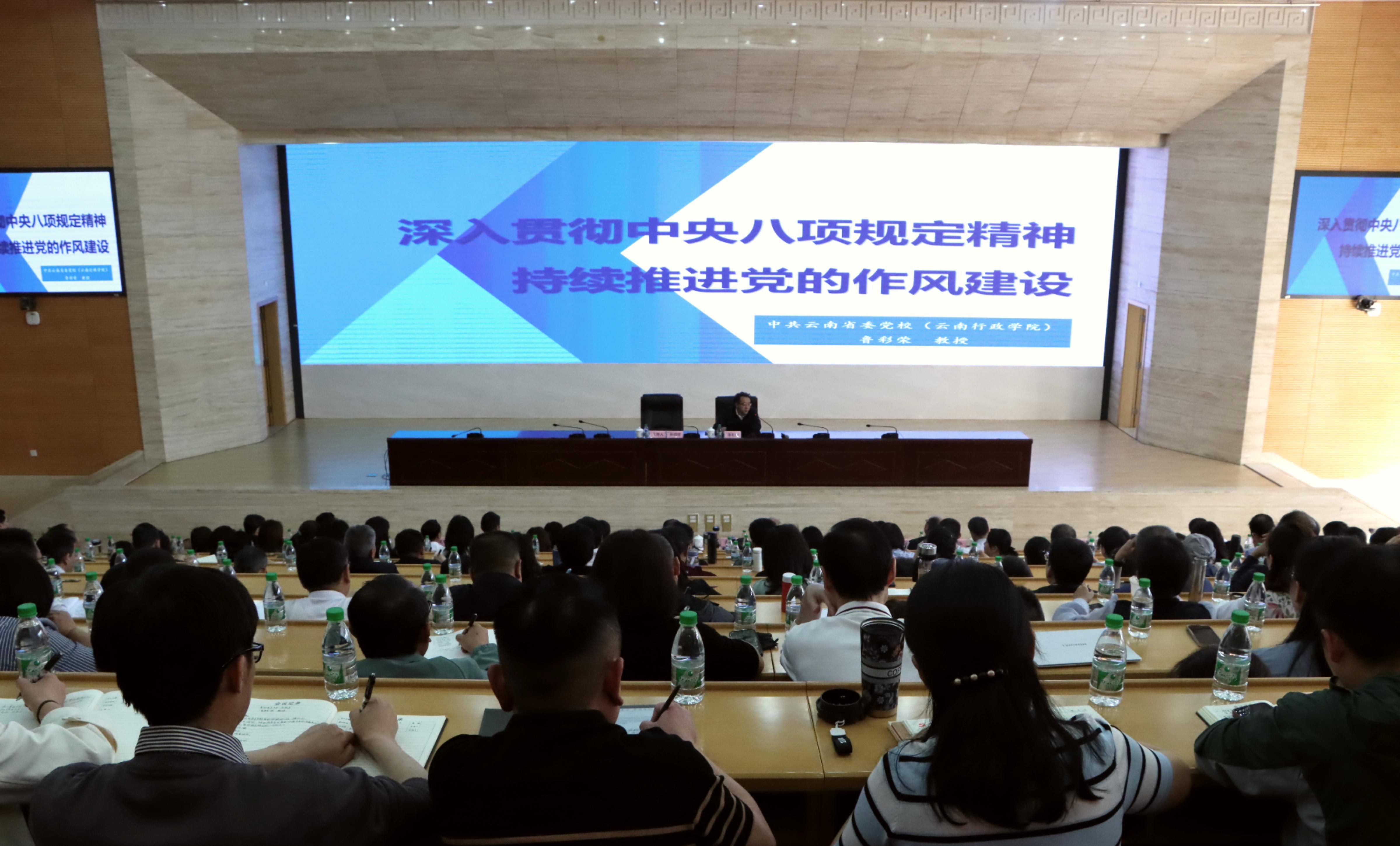4月23日,邀请中共云南省委党校(云南行政学院)副校(院)长鲁彩荣教授作《深入贯彻中央八项规定精神 持续推进党的作风建设》的专题辅导,他从“鉴往知来:从百年党史解码作风建设历史主动”“立规定向:以中央八项规定锚定全面从严治党时代坐标”“知行合一:用云南实践答好作风建设赶考新题”3个方面进行系统深入的讲授。