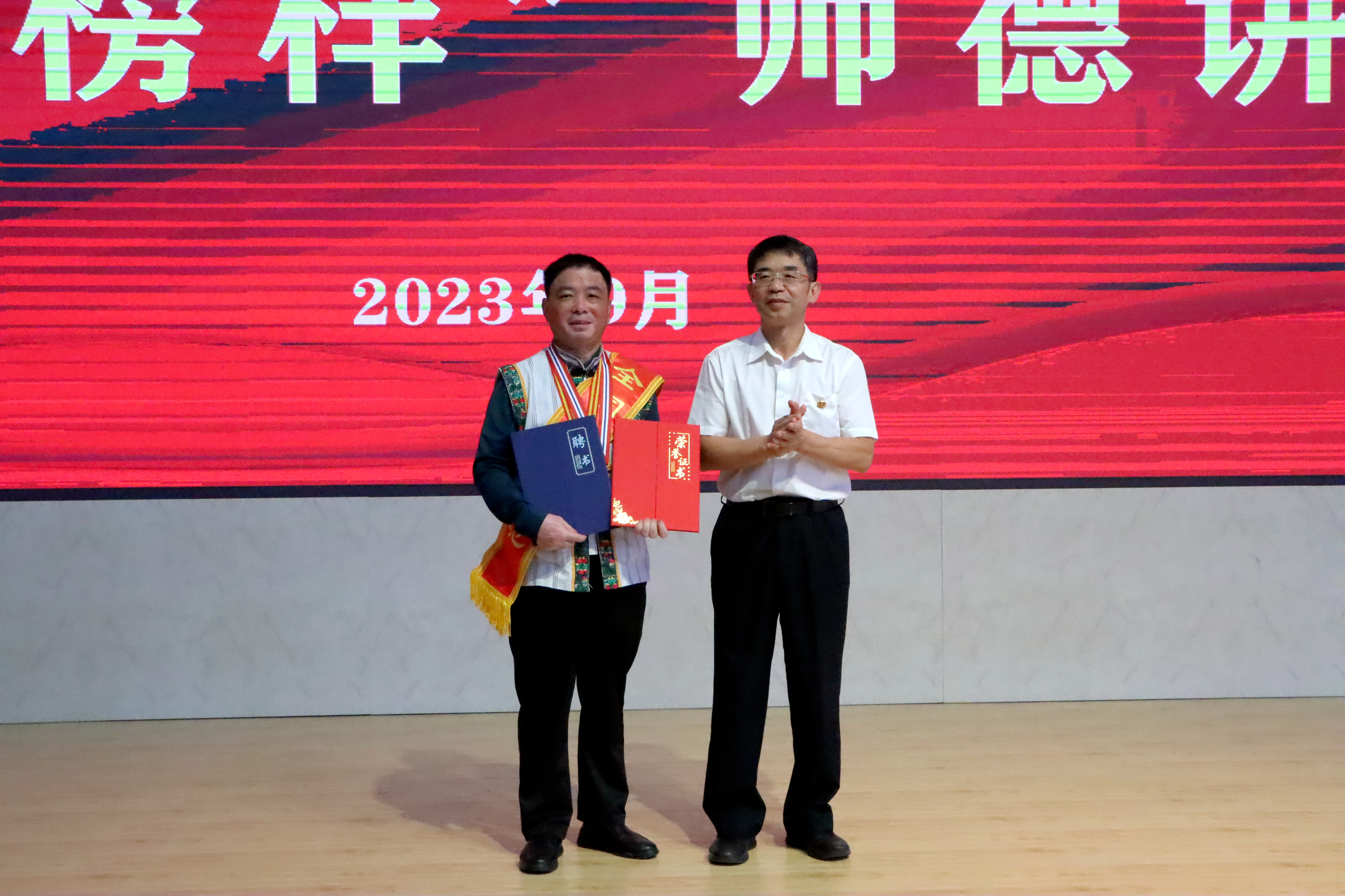 活动上,校党委书记尹向阳向邓前堆医生颁发“昆医榜样”师德讲坛特聘讲师证书及“名誉校友”证书。
