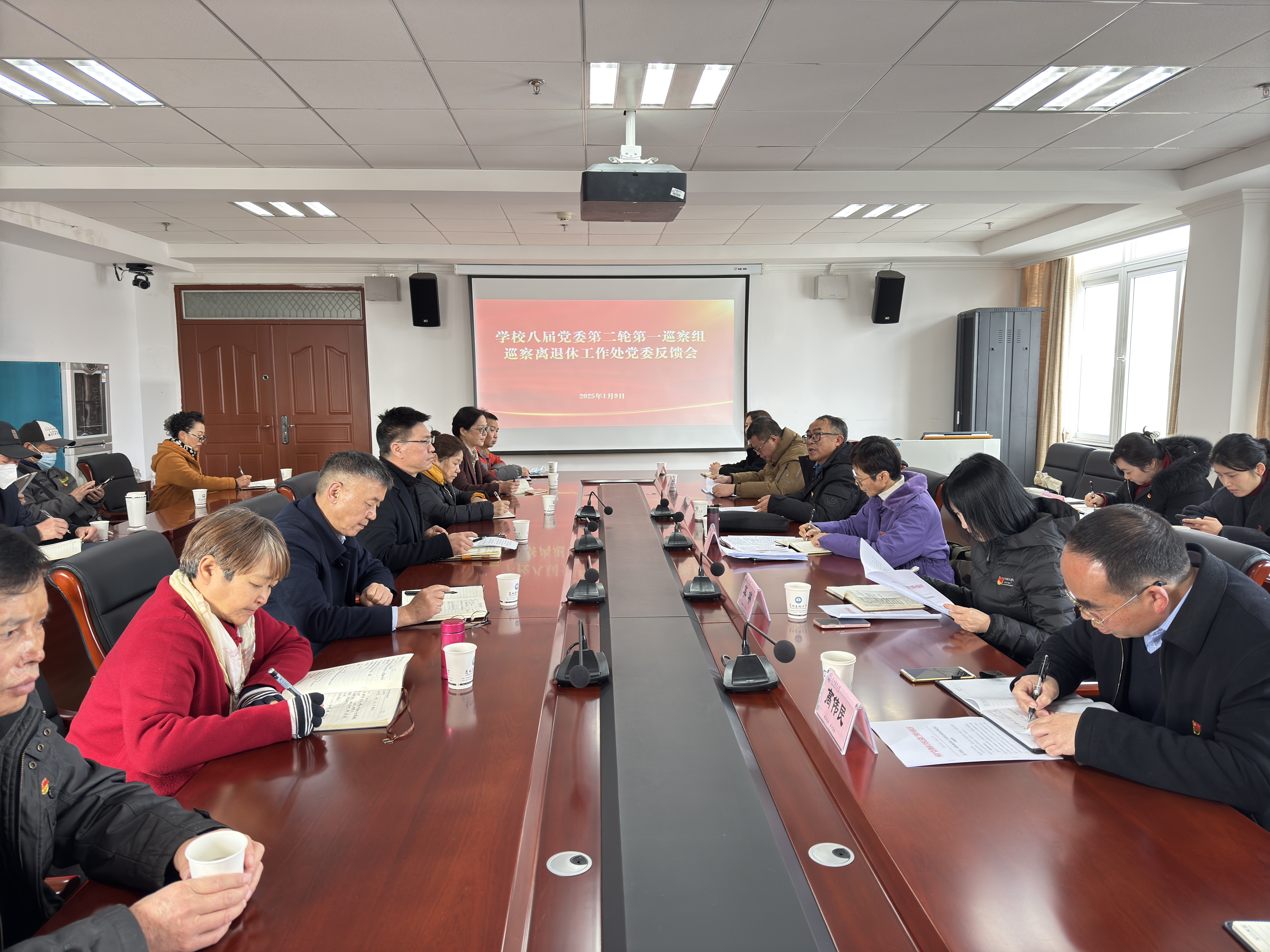 党委常委、组织部部长革琳,纪委副书记、纪委办公室(监察办公室)主任高伟民,党委巡察办副主任盛海,学校党委第二轮第一巡察组副组长卢蓉、朱尤宝及其他同志,离退休工作处党委班子成员、退休党支部书记及在职职工参加会议。