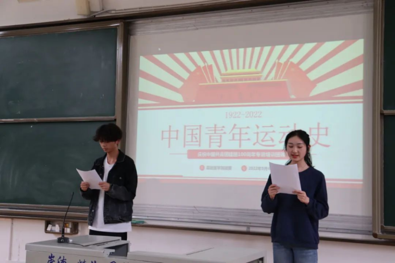 米兰milan官方网站基础医学院于5月4日在教学楼1106开展了2022年新发展团员入团仪式以及“喜迎二十大、永远跟党走、奋进新征程”主题教育实践活动暨百年青年运动史宣讲活动。基础医学院新发展团员进行入团仪式后,基础医学院团委书记何浏,各班团支书以及基础医学院学生会部分同学参与此次宣讲。何浏老师向同学们介绍了共青团成立的历史背景,早期共青团组织的诞生过程和中国共产主义青年团的创建历程。最后,同学们进行了团史诗歌朗诵,以此来庆祝中国共青团成立100周年。