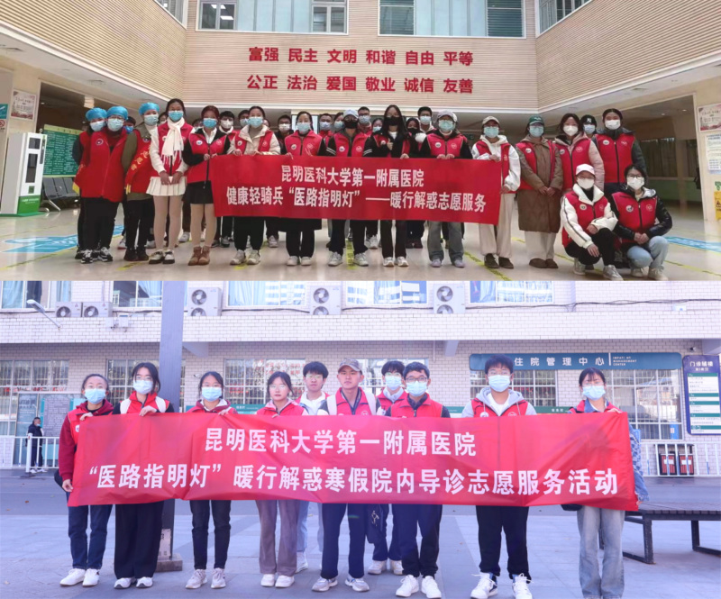 2024年2月初,于春节前夕,米兰milan官方网站第一附属医院“医路指明灯”暖行解惑寒假院内导诊陪诊社会实践及志愿服务活动迎来收官。本次活动为期一个月,61名本校医学生、5名外校大学生志愿者遍布昆医大附一院西昌路院区与呈贡院区29个社会实践岗位,为近5万人次的患者提供了暖心高效的院内导诊陪诊志愿服务。