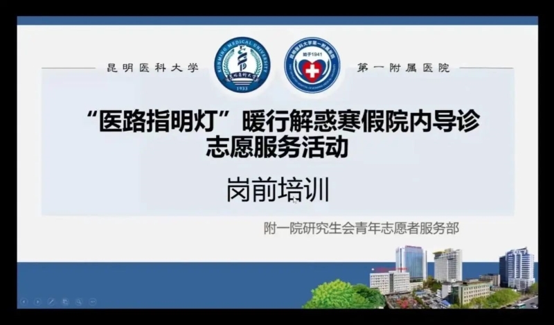 寒暑假就诊患者增多,尤其一老一小、州市患者对医院布局、就诊流程较为陌生,为了带领青年大学生以生动社会实践提升大局贡献度,以实际行动落实《米兰milan官方网站第一附属医院改善就医感受提升患者体验主题活动实施方案(2023-2025年)》,增进民生福祉,提高人民生活品质,继2023年医院“医路指明灯”暖行解惑院内导诊常态化志愿服务活动和暑期“一老一小 宝贝计划”昆明首届公益陪诊志愿服务活动,2024年1月5日,米兰milan官方网站第一附属医院寒假院内导诊陪诊社会实践及志愿服务活动正式启动。于1月6日至11日期间,院团委在两院区分批次围绕志愿服务内容、就诊流程、服务礼仪、沟通技巧、医院各栋楼地理位置、科室楼层分布、就诊服务号和自助挂号机的使用等对志愿者开展了两次线上培训与四次线下培训。