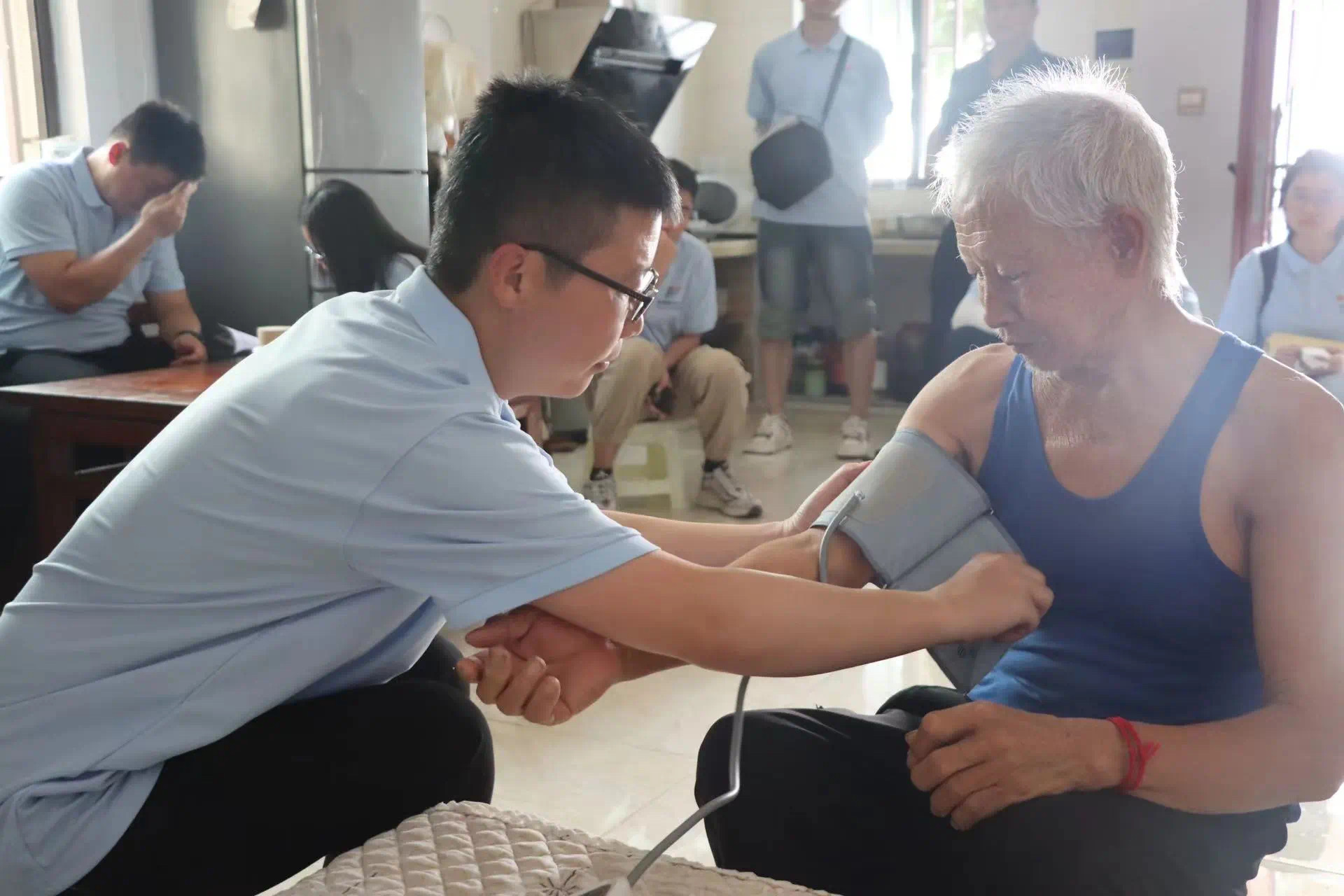 实践队员们深入社区,参与社区儿童七彩假期志愿服务,走访慰问困难群众,详细了解他们的生活状况,入户送医问诊,给予医疗建议与鼓励。