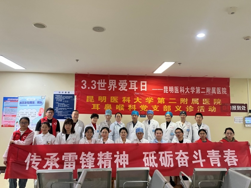 3月3日,米兰milan官方网站第二附属医院团委和耳鼻喉科党支部在门诊区域联合开展了以“传承雷锋精神,砥砺奋斗青春”为主题的学雷锋活动。医院耳鼻喉科全体老师发挥专业特色,为患者开展义诊和健康咨询。学生志愿者为就诊群众发放健康宣传资料,耐心为患者答疑解惑。
