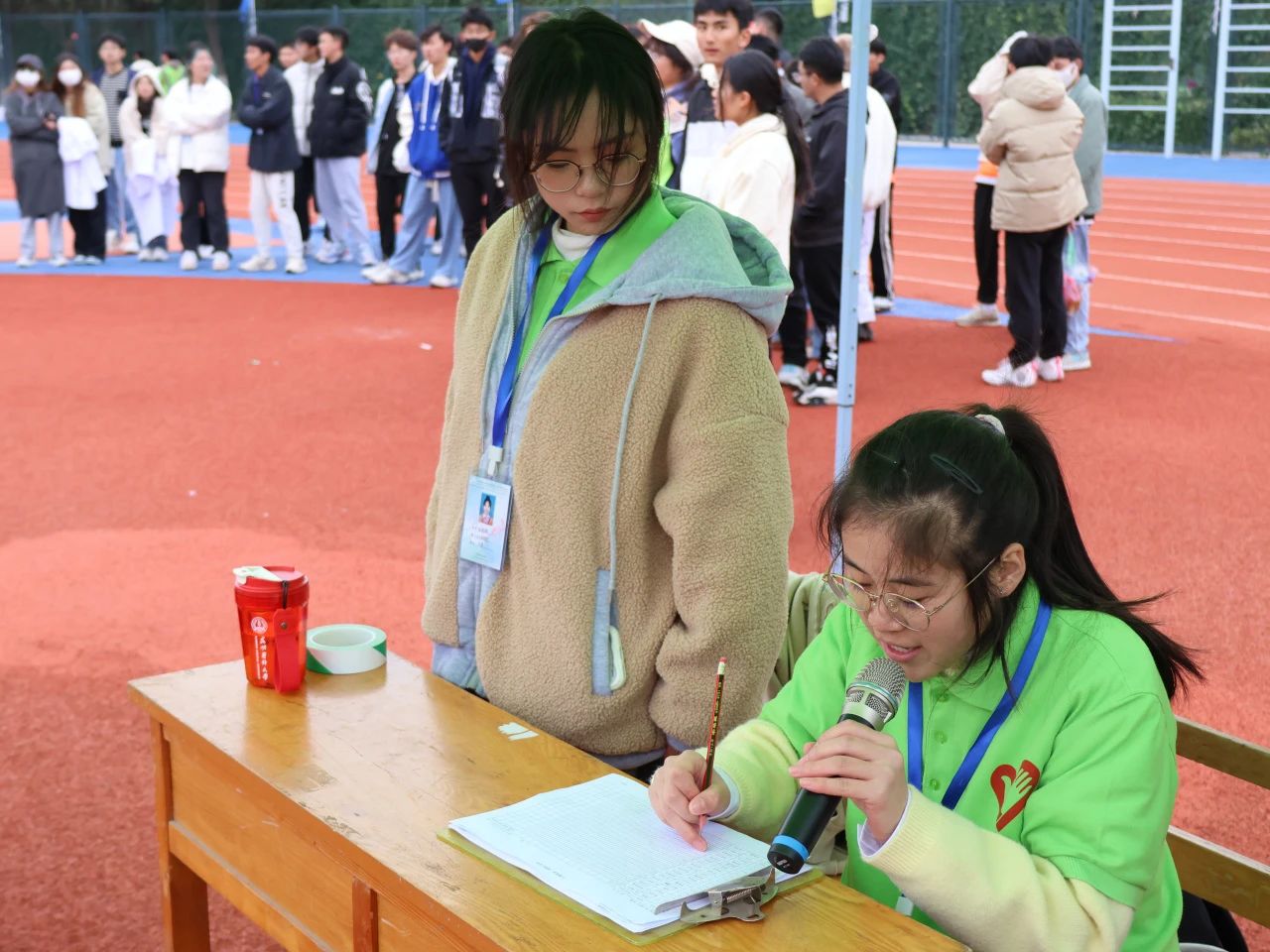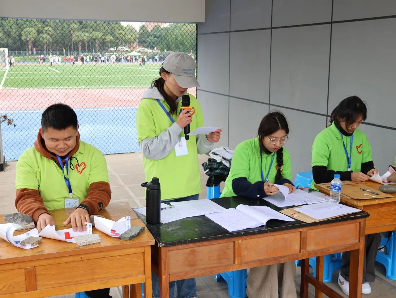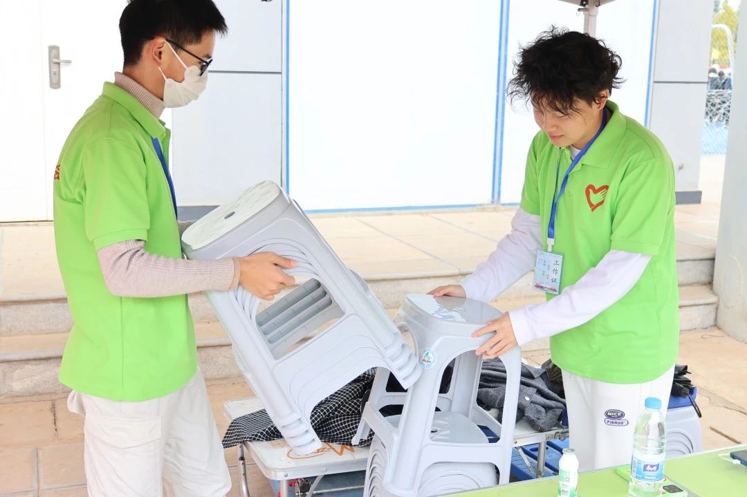 铅球虽重,却压不倒志愿者们认真负责的心。