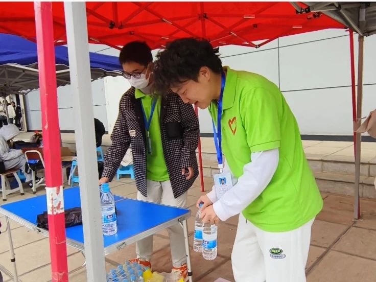 后勤部的志愿者们负责志愿者团队的后勤保障工作,为其它志愿者补充饮用水,协助其它小组做好志愿工作并随时作好支援其它小组的准备。