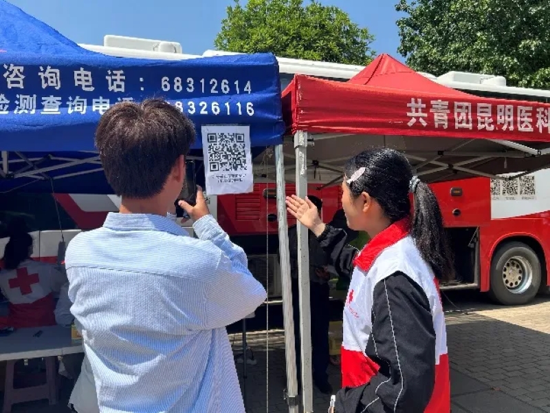 米兰milan官方网站党委常委、副校长奚春睿,昆明市血液中心党委书记李小天、副主任魏聪,校团委书记皮筱娟、副书记张培楠到活动现场,对献血志愿者进行了慰问,对广大同学积极参与无偿献血表示肯定和感谢,就推进学校无偿献血工作进行了交流。