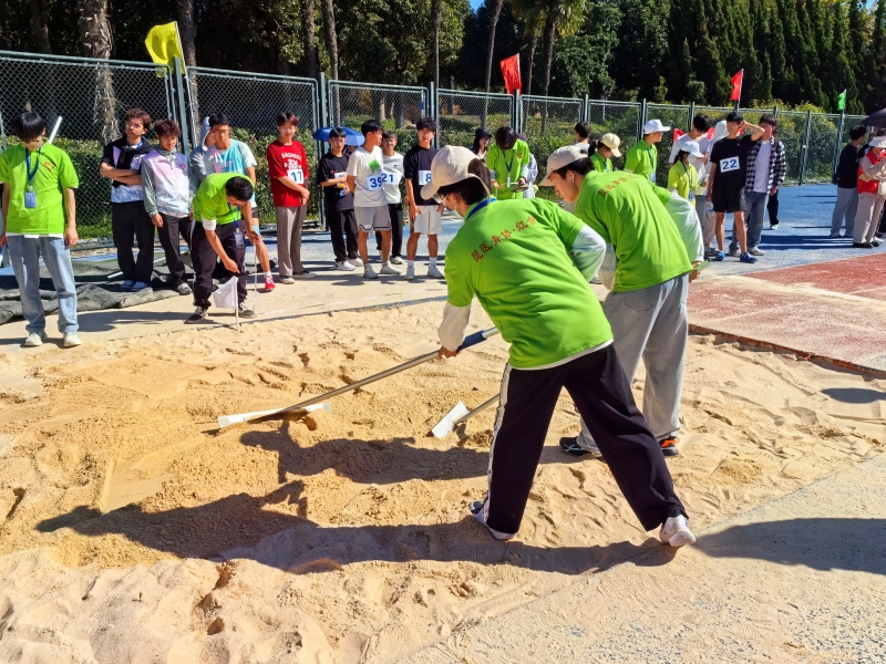 跳远部的志愿者们在清晰播报,准确测量,填平沙坑中真正做到了“快准狠”,正如运动员冲刺跳跃一般迅猛。烈日中总有他们的身影,每一次挥铲,每一滴汗水,填平的不只沙坑,还有运动员心中的不安。