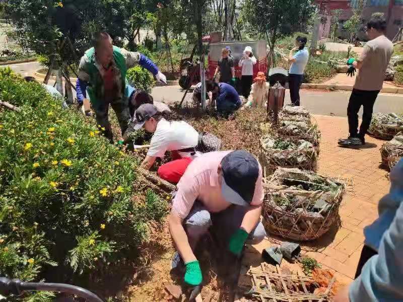 2021年5月12日中午,张洪波副校长带领资产处党支部与后勤发展中心所属党支部同志们在呈贡校区南校区两馆周边绿地开展“认养一片地、留下一片绿,认养一棵树、比比谁最壮”主题党日活动。