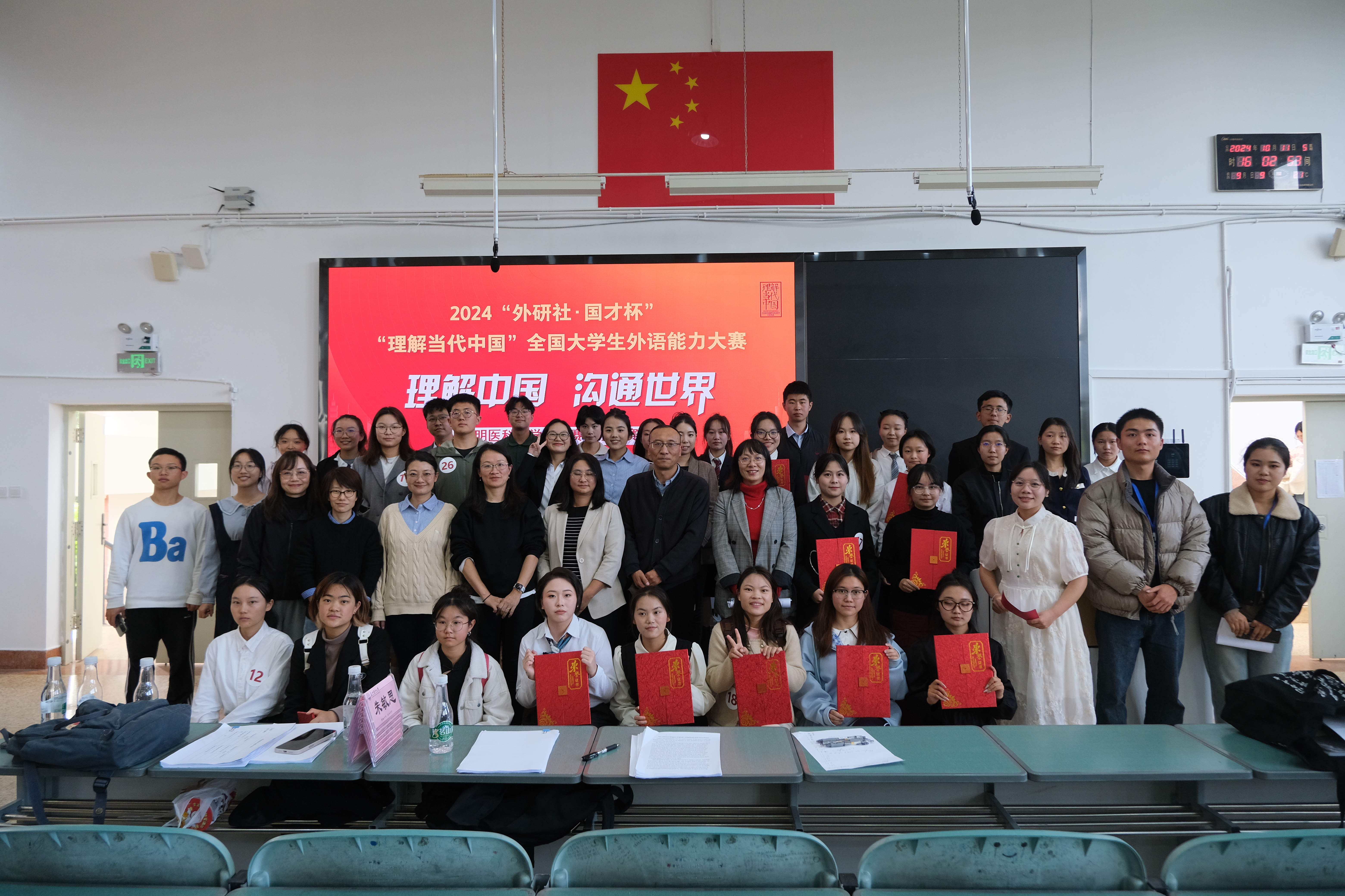 2024年10月11日下午,外语部举办了2024年“外研社·国才杯”全国大学生外语能力大赛演讲校赛。来自不同学院共30位选手参赛,本次比赛邀请学生处副处长徐卫琼,外语部副主任吴坚,以及肖燕、林滢静雅、陈汉白、李昆秀、朱敏思等外语部教师作为评委,对参赛选手进行指导与点评。本次大赛旨在让同学们锻炼学生们英语表达能力的同时,讲好中国故事,做好中外沟通桥梁。