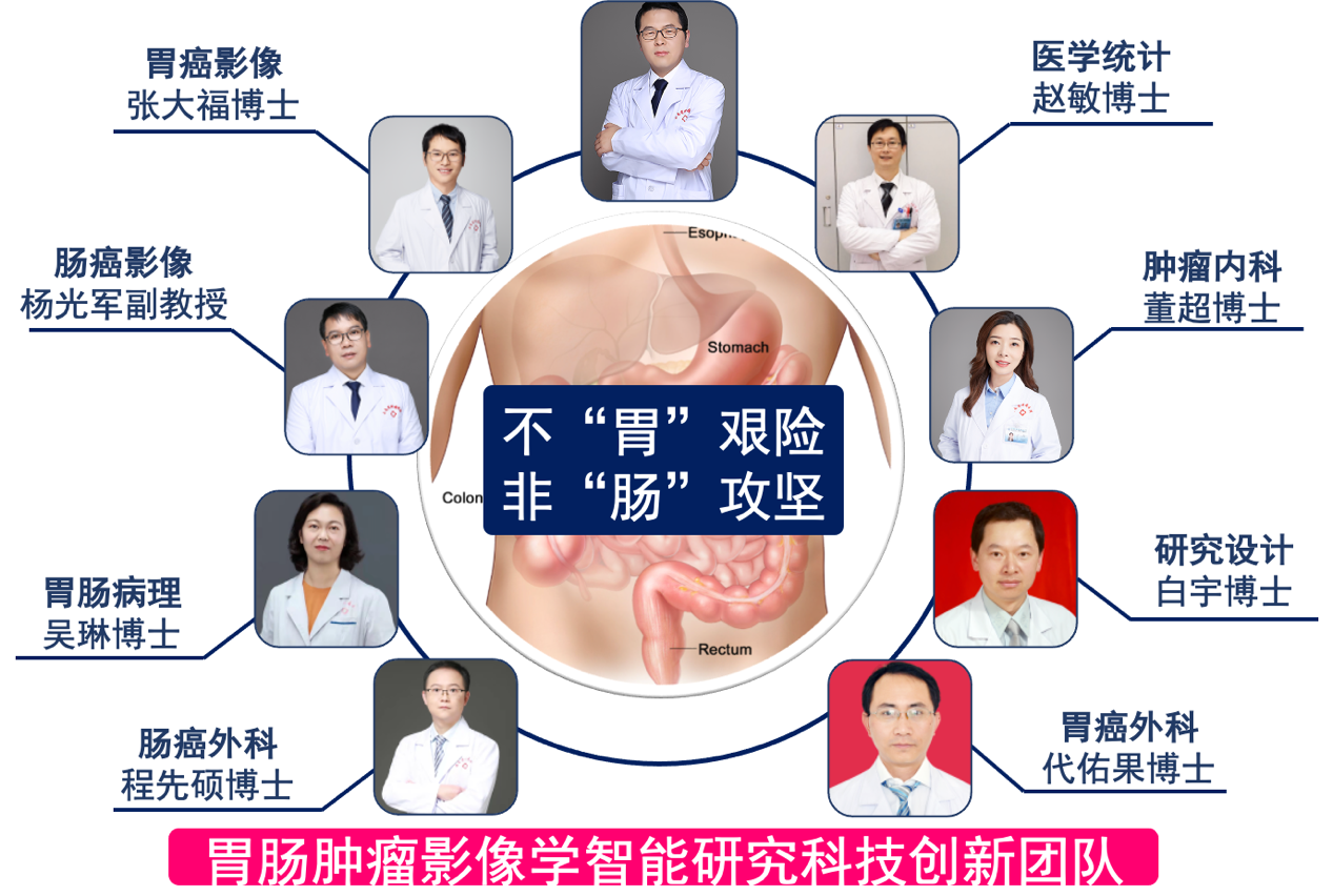 团队以探索基于影像-病理图像的胃肠肿瘤精准诊疗为团队的研究方向,期待通过紧密合作与专业互利,使用人工智能挖掘影像图像及病理图像所蕴含的深层次、海量信息,利用影像图像(宏观层面)与病理图像(微观层面)的互补性以全面表征胃肠肿瘤异质性,构建胃肠肿瘤治疗疗效及预后预测模型,为胃肠肿瘤个体化治疗提供决策依据,实现胃肠肿瘤精准诊疗,最终提高胃肠肿瘤的五年总体生存率。